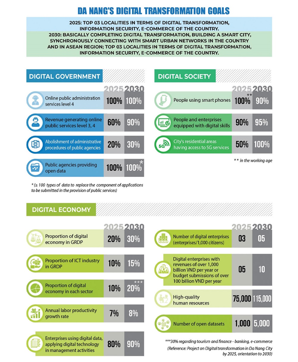 On January 24, 2019, the Politburo issued Resolution No. 43-NQ/TW on building and developing Da Nang City until 2030, with a vision to 2045. The Resolution outlines hi-tech industry as one of the three main pillars of the city's economy, giving priority to ICT industry associated with the digital economy. Accordingly, Da Nang government has identified digital transformation as the driving force for the development of the city in all aspects, including governance, economy and society, contributing to the city's goal of building a smart city, synchronously connecting with smart urban networks in the country and in the ASEAN region by 2030.