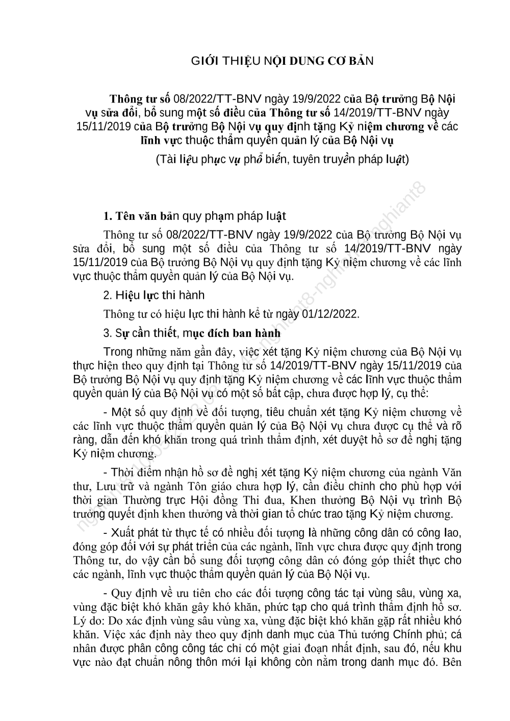 Nội dung cơ bản Thông tư 08 2022 của BT Bộ Nội vụ sửa đổi, bổ sung một số điều của TT 14 của BT Bộ Nội vụ qđtặng Kỷ niệm chương .. của Bộ Nội vụ.pdf