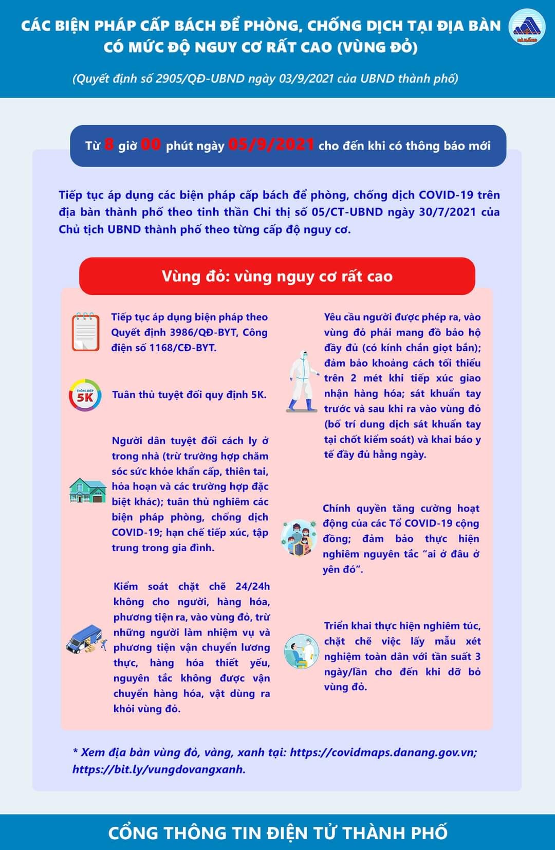 Những biện pháp cấp bách phòng chống dịch Covid-19 tại Đà Nẵng Người đăng tin: Admin Admin Ngày đăng tin: 06/09/2021 Lượt xem: 38 Vietnamese Male Các biện pháp được phân theo 3 vùng như sau: