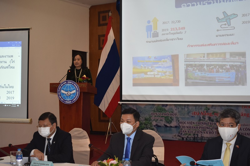 Tại Hội thảo đã có 06 tham luận được trình bày và trao đổi phản biện sôi nổi về các vấn đề đưa ra. Với tham luận: Hợp tác đầu tư của doanh nghiệp Thái Lan tại Đà Nẵng trên các lĩnh vực thương mại, du lịch; ưu đãi vượt trội của Đà Nẵng so với các địa phương khác trong việc thu hút đầu tư nước ngoài, bà Đỗ Thị Quỳnh Trâm, Phó Giám đốc Ban Xúc tiến và Hỗ trợ đầu tư đã trình bày khái quát về quan hệ hợp tác kinh tế giữa Việt Nam và Thái Lan nói chung, thành phố Đà Nẵng và Thái Lan nói riêng trên nhiều lĩnh vực. Trong năm 2020, mặc dù dịch bệnh Covid-19 gây ra những bất ổn kinh tế toàn cầu nhưng quan hệ hợp tác kinh tế giữa Việt Nam và Thái Lan vẫn phát triển, là điểm sáng ấn tượng trong quan hệ song phương. Giá trị thương mại giữa Việt Nam và Thái Lan trong năm 2020 đạt hơn 11 tỷ USD, chiếm gần 20% tổng kim ngạch xuất nhập khẩu giữa Việt Nam và ASEAN. Về đầu tư trực tiếp nước ngoài, lũy kế đến tháng 10 năm 2021, Thái Lan là đối tác đầu tư nước ngoài lớn thứ 9 của Việt Nam với 639 dự án còn hiệu lực và tổng vốn đầu tư đăng ký đạt hơn 12 tỷ USD.