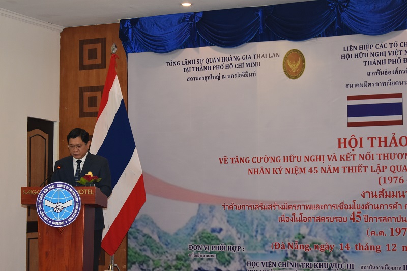 Phát biểu chào mừng tại Hội thảo, Phó Chủ tịch UBND thành phố Trần Phước Sơn đánh giá cao kết quả hợp tác giữa Thái Lan với thành phố Đà Nẵng. Quan hệ hợp tác, đầu tư giữa Đà Nẵng với các đối tác Thái Lan đạt nhiều tiến bộ trên các lĩnh vực thương mại, du lịch và giáo dục - đào tạo; giao lưu văn hóa nhân dân ngày càng phát triển và nâng tầm. Thời gian đến, để quan hệ hợp tác Đà Nẵng và Thái Lan tiếp tục phát triển, hai bên cần duy trì và mở rộng quy mô các hoạt động hợp tác thương mại, đầu tư, du lịch, đặc biệt phát huy lợi thế từ tuyến hành lang kinh tế Đông Tây… "Phải nói rằng, tiềm năng hợp tác giữa Đà Nẵng và các địa phương, đối tác Thái Lan còn rất lớn, đặc biệt là khi Đà Nẵng xác định mục tiêu trở thành một trong những trung tâm KT-XH lớn của cả nước và Đông Nam Á. Với vị trí địa lý thuận lợi, cơ sở hạ tầng hiện đại và Cảng Tiên Sa là điểm cuối của Tuyến Hành lang kinh tế Đông Tây, quan hệ hữu nghị và hợp tác giữa Đà Nẵng và các đối tác Thái Lan có nhiều cơ hội phát triển để đem lại lợi ích cho các bên. Chúng ta tin tưởng rằng, "Hội thảo và triển lãm ảnh về tăng cường hữu nghị và kết nối thương mại - đầu tư - du lịch Đà Nẵng - Thái Lan" lần này sẽ là cơ hội tốt cho chính quyền, các ban ngành, các doanh nghiệp của hai nước để đánh giá và đẩy mạnh hơn nữa quan hệ hữu nghị, hợp tác Việt Nam - Thái Lan ở thành phố Đà Nẵng; đồng thời tin tưởng Đà Nẵng tiếp tục là điểm đến của các bạn Thái Lan với những ý định tốt đẹp về đầu tư, kinh doanh, hợp tác" - Phó Chủ tịch Trần Phước Sơn nhấn mạnh.