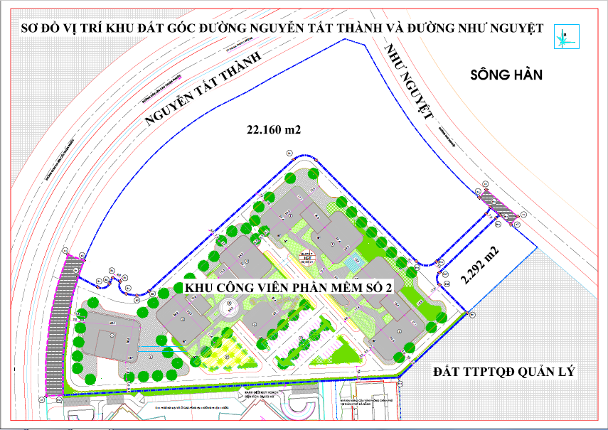- Tứ cận: Phía Đông giáp đường Như Nguyệt; Phía Tây giáp Khu Công viên phần mềm số 2; Phía Bắc giáp đường Nguyễn Tất Thành; Phía Nam giáp đất Trung tâm đang quản lý.