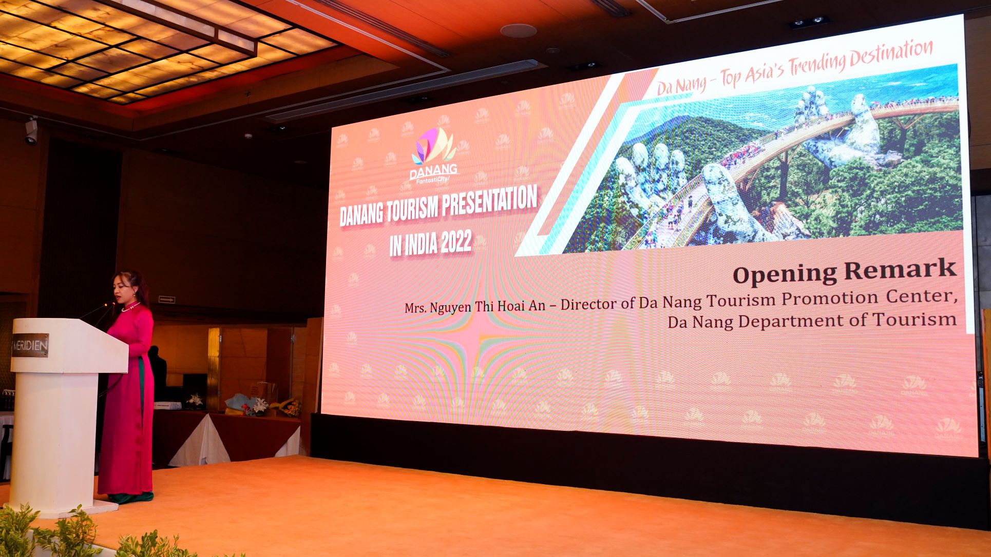 Đại diện Sở Du lịch thành phố Đà Nẵng, bà Nguyễn Thị Hoài An - Giám đốc Trung tâm Xúc tiến Du lịch đã giới thiệu hình ảnh Đà Nẵng, điểm đến mới nổi bật của châu Á và là thành phố sự kiện - lễ hội sôi động; đồng thời cung cấp thông tin về sản phẩm, dịch vụ, đặc biệt là các gói sản phẩm về nghỉ dưỡng biển, du lịch kết hợp hội nghị, hội thảo (MICE), du lịch cưới hỏi của thành phố Đà Nẵng đến thị trường Ấn Độ, để chuẩn bị cho các hoạt động trao đổi du lịch trong thời gian tới. Bà khẳng định, với sự tăng trưởng đáng kể về trao đổi thương mại, du lịch, dịch vụ giữa Việt Nam - Ấn Độ, nhất là trong bối cảnh phục hồi kinh tế sau đại dịch COVID-19, Đà Nẵng nhận thấy đây là thời điểm vàng cho các hoạt động xúc tiến.
