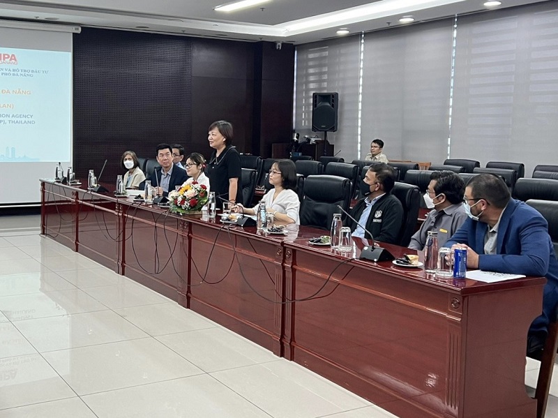 Bà Huỳnh Liên Phương, Giám đốc Ban Xúc tiến và Hỗ trợ đầu tư Đà Nẵng giới thiệu với đoàn về các dự án kêu gọi đầu tư tại Đà Nẵng