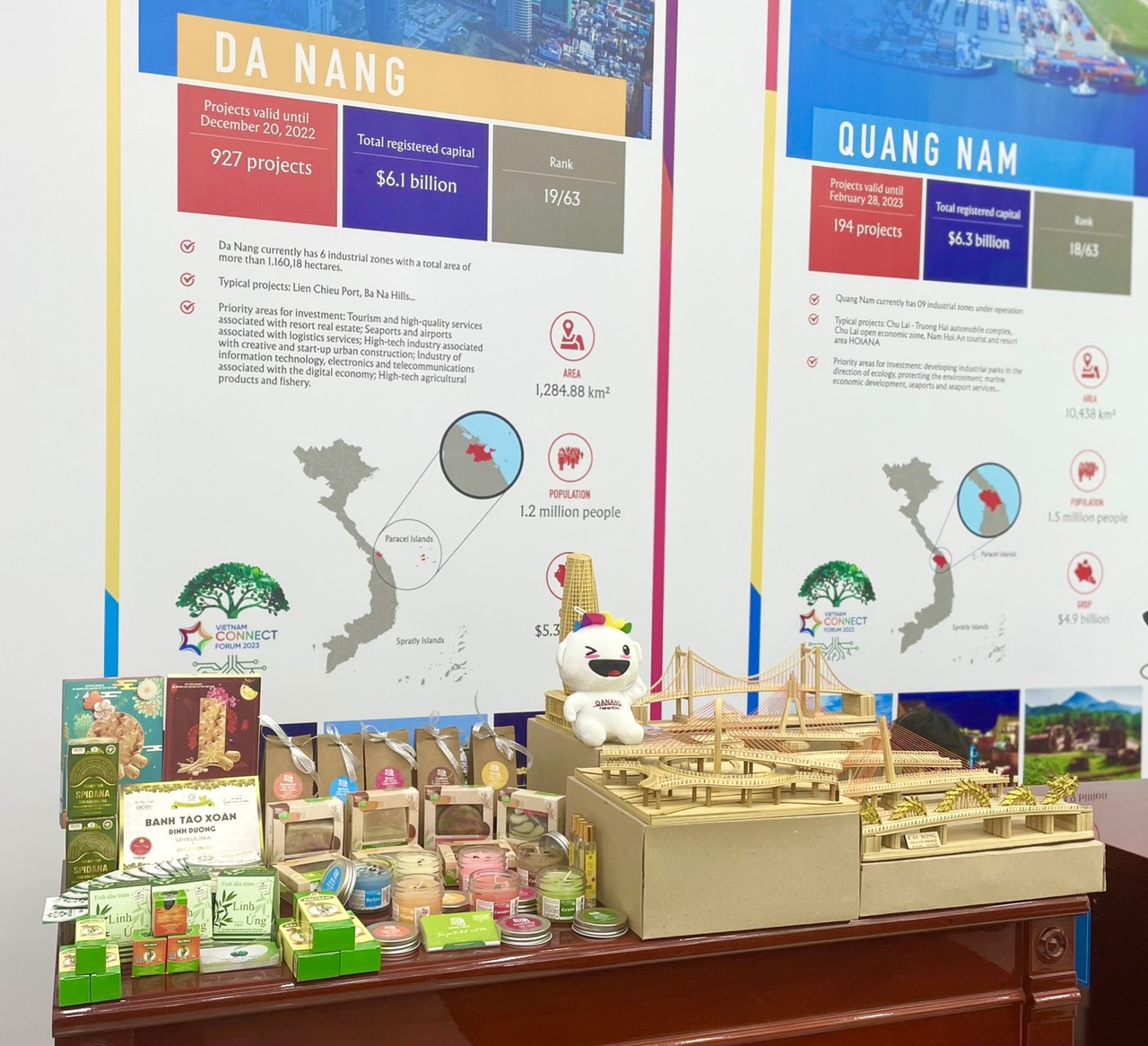 Bàn trưng bày và giới thiệu môi trường đầu tư, sản phẩm lưu niệm của TP Đà Nẵng tại Diễn đàn