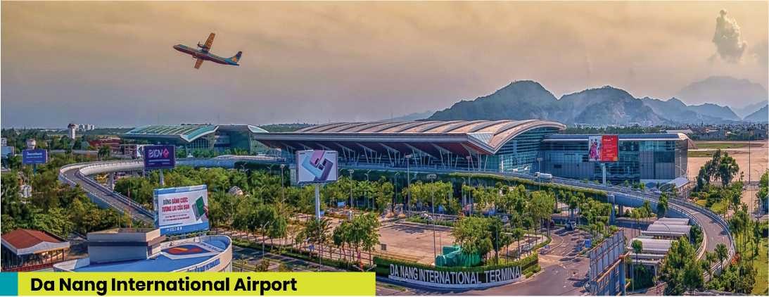 + Sân bay quốc tế Đà Nẵng là một trong ba sân bay lớn nhất và hiện đại nhất Việt Nam, khai thác hơn 768 chuyến bay quốc tế mỗi tuần, công suất hơn 10 triệu khách/năm; 02 đường băng đạt chuẩn phục vụ Boeing 787, Airbus A350. Hiện sân bay Đà Nẵng đang được đầu tư nâng cấp, đáp ứng công suất 25 triệu khách/năm, khối lượng hàng hóa thông qua cảng hàng không đạt 200.000 tấn/năm vào năm 2030.